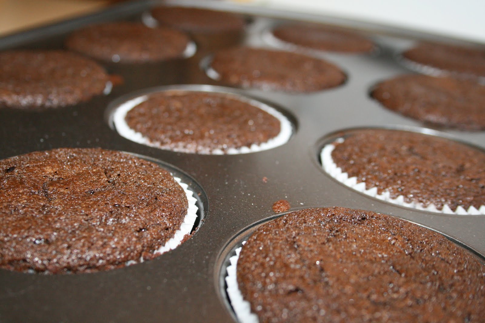 Now the original recipe cored out about an inch of each cupcake and filled them with chocolate ganache. (VERY YUM!) However, I ran out of time and had to skip that delicious step. I would definitely try that if I make these again...you simply cannot go wrong when it comes to decadent chocolate ganache! :)